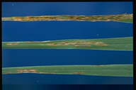 Spot-causing fungal disease occurring mainly in the warm regions from Kyushu to Chugoku districts. The lesions are ash white with brown border and short spindle-shaped or oval. The lesion size is about 5-10mm, but soon they fuse mutually and cause leaf blight of the entire leaf. Causal organism is homogeneous with rice blast fungus, but its pathogenicity is differentiated, and shows pathogenicity to ryegrass, but not to rice, barley and wheat.
