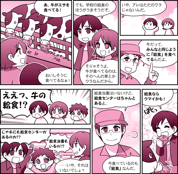 農研機構【ガイドコミック】 第1話・牛の給食センター ~牛のまぜご飯(発酵TMR)~ 目次へ