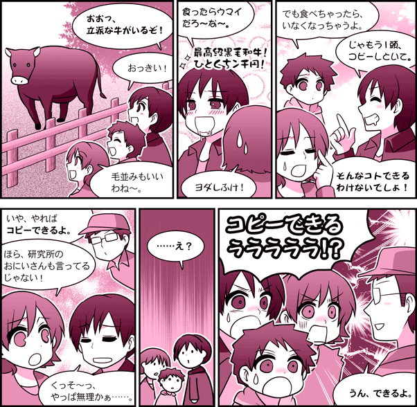農研機構【ガイドコミック】 第5話・体細胞クローン牛とは? 目次へ