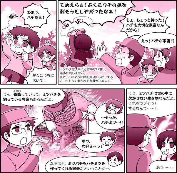 農研機構【ガイドコミック】 第6話・日本のミツバチ-ミツバチって本当にいなくなったの? 目次へ