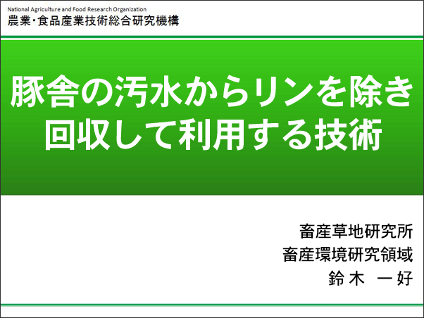 農研機構【ガイドコミック】 第7話・豚舎の汚水からリンを除き回収して利用する技術 目次へ