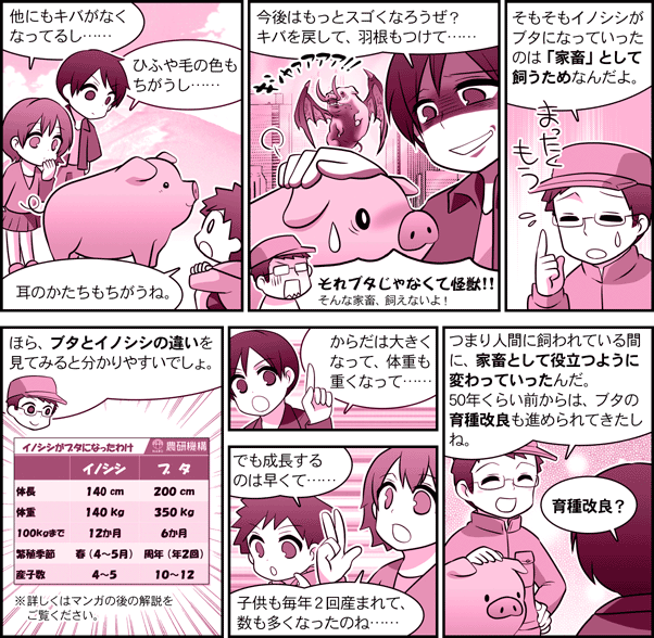 農研機構【ガイドコミック】 第9話・イノシシがブタになったわけ 目次へ