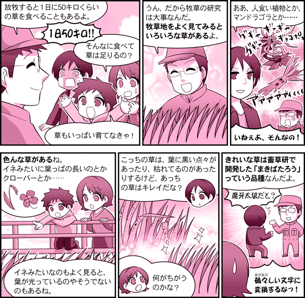 農研機構【ガイドコミック】 第11話・草は牛の主食 ~牧草の種類と品種のはなし~ 目次へ