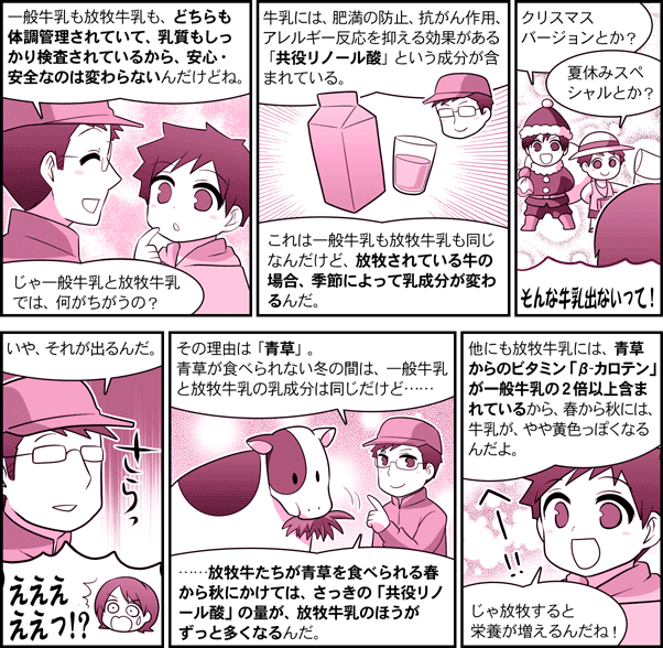 農研機構【ガイドコミック】 第12話・放牧牛乳を味わってみよう 目次へ