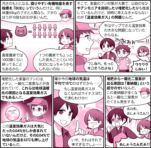 農研機構【ガイドコミック】 第14話・家畜のフンから排出される温室効果ガスをどうする? 目次へ