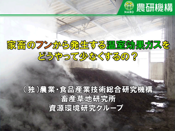 農研機構【ガイドコミック】 第14話・家畜のフンから排出される温室効果ガスをどうする? 目次へ