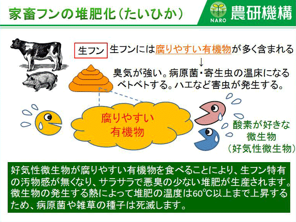農研機構【ガイドコミック】 第14話・家畜のフンから排出される温室効果ガスをどうする? 目次へ