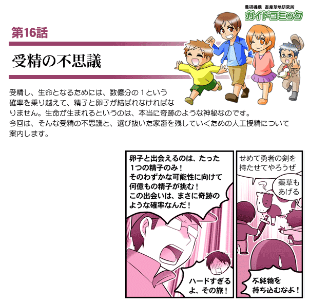 農研機構【ガイドコミック】 第16話・受精の不思議 目次へ