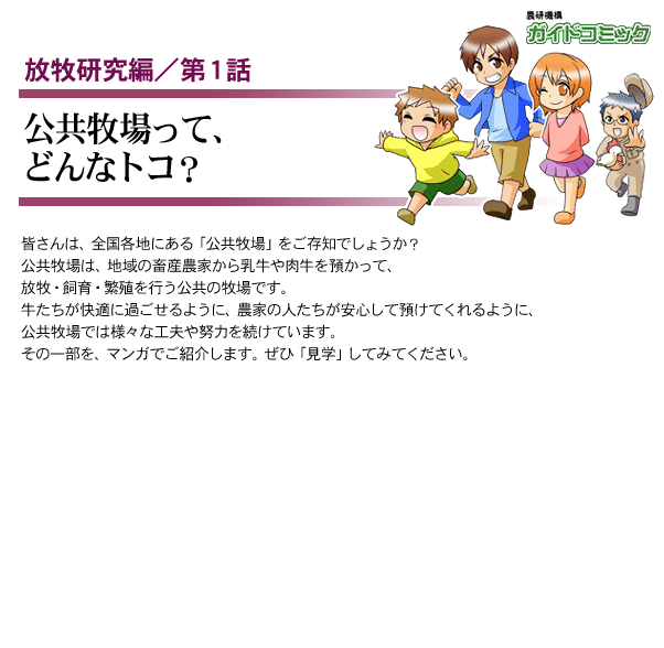 農研機構【ガイドコミック】 放牧研究編 第1話・公共牧場って、どんなトコ? 目次へ