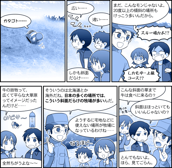 農研機構【ガイドコミック】 放牧研究編 第2話・命の源「草地」をつくる 目次へ