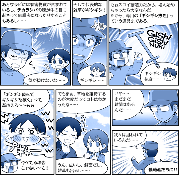 農研機構【ガイドコミック】 放牧研究編 第2話・命の源「草地」をつくる 目次へ