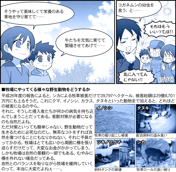 農研機構【ガイドコミック】 放牧研究編 第3話・牧場を荒らす害獣たち 目次へ