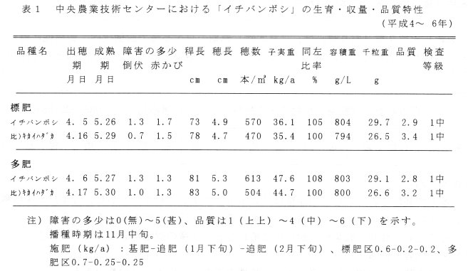 - 「イチバンボシ」は「キカイハダカ」に比較して早熟、良質、多収であるところから、「キカイハダカ」にかえて奨励品種に採用した。