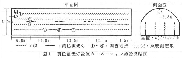 - 黄色蛍光灯の点灯が作物の生育に及ぼす影響は作物、品種により異なると考えられるので、利用に際してはその点に十分注意する必要がある。
