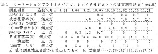 発表論文等:1.黄色蛍光灯によるカーネーションのタバコガ・ヨトウムシ類に対する