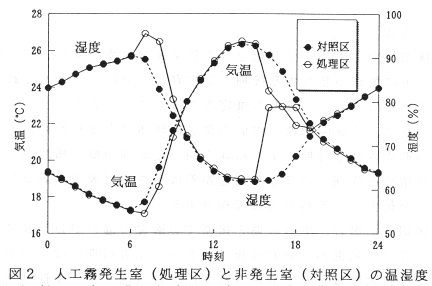 発表論文等:細霧冷房装置の利用による人工霧の発生とそれによる多湿・霧環境に対する葉根菜類の生育反応の調査(平成9年度農業気象学会講演要旨集)