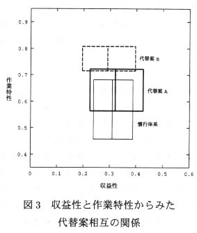 - 収益性と作業特性の2つを大きな評価基準(属性)とする評価モデル
