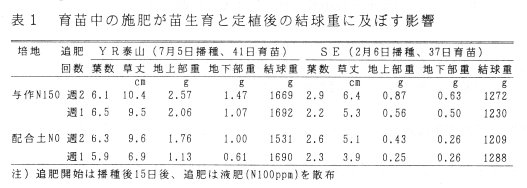 - 施肥量を減少すると苗の重量が小さくなる。苗重量の低下は生育の遅れや収量の低下につながる場合があるため注意する。