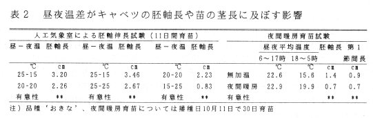 昼夜温差が野菜苗の胚軸および幼茎伸長に及ぼす影響、園芸学会近畿支部
