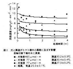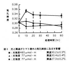 発表論文等:トマト穂木の蒸散に及ぼす相対湿度・光強度および葉温の影響、園学雑、64巻4号、1996.