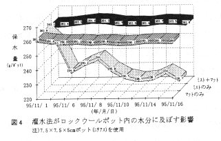 - 底面吸水式ベンチは、従来のミストのみのかん水システムに比べて、ロックウールポット内の水分が均一に管理できる(図4)。