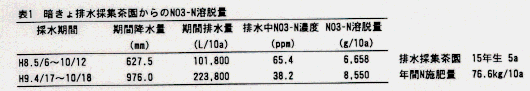 - 期間内に暗きょ排水によって茶園より流出する硝酸態窒素量は年間N施肥量の10%程度であるが、排水量・硝酸態窒素濃度は降水量の影響による年次変動が大きい(表1)。