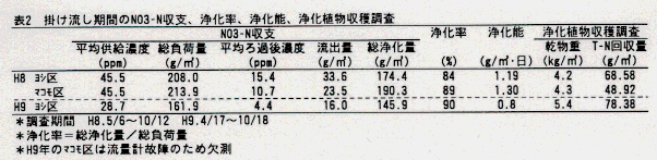 - 総浄化量は、浄化植物体による全窒素回収量以外に脱窒作用・土壌による吸着・浄化植物の地下部による蓄積等を総じたものと考えられる。