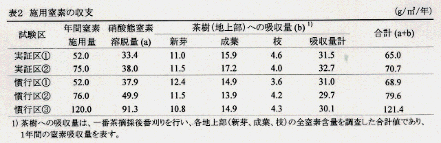 発表論文等 : 被覆尿素肥料を利用した効率的施肥体系による窒素溶脱量の低減効果、茶業研究報告、第85号(別冊)、1997.