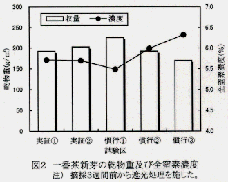 - 玉露、てん茶栽培では、高品質を追求するあまり過剰な肥料投入が行われる傾向にあり、窒素溶脱等による環境への負荷が懸念されている。そこで、被覆尿素肥料等を利用し、茶樹の養分吸収特性に応じた効率的な施肥体系を確立するために、ライシメータによる栽培を行い、施用窒素の収支を把握することによって環境負荷への低減効果を調査した。