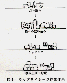 - 作業行程:刈り取り→充填→ラッピング→積み上げ・貯蔵(図1)