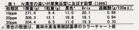 ブドウ‘巨峰’の水気耕栽培におけるN濃度が生育に及ぼす影響、園学中四国支部要旨、36号、9、1997.