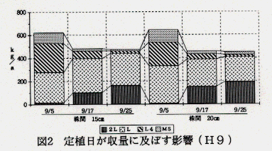- ほ場の乾湿により株間を調整する必要がある。