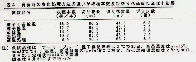 - 切り花品質についても出荷に十分なものである(表4)。