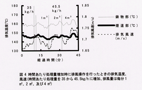 - 時間あたり処理量を多くして乾燥不十分な状態としたとき、乾燥室の排風量を増加することで排気温度の低下や排気風速の減少はみられなくなり、排風操作は乾燥条件の管理上有効な手法となる。(図4)。