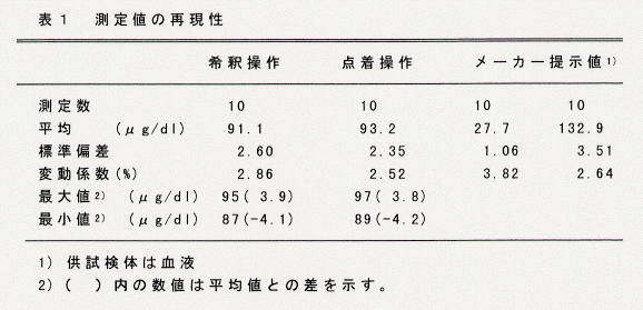 - 迅速法による100倍希釈液の測定濃度は(μg/dl)単位であり、原液中の(mg/dl)単位に変換するには測定値に0.1を乗じる。