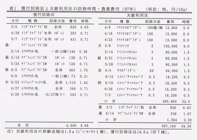 - 天敵利用体系は、一層の経費低減、天敵防除の効果等について引き続き試験を進めている。