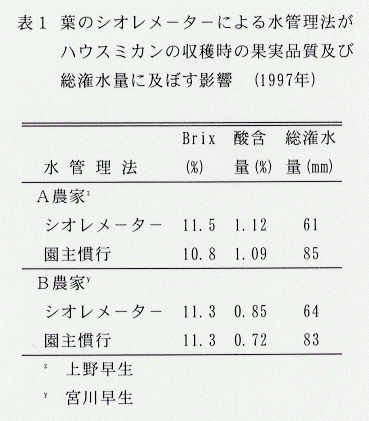 発表論文等 : ワセウンシュウの葉の調位運動を利用した水管理指標が樹体および果実形質に及ぼす影響、園学雑67別2、194、1998.