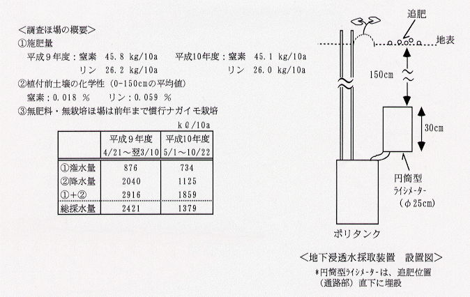 - そこで、砂丘畑からの肥料成分の溶脱量を測定する円筒型ライシメーターを用いて、化学肥料で慣行栽培されている砂丘ナガイモ畑から地下に溶脱する窒素、リン量を調査し、環境負荷実態について検討する。