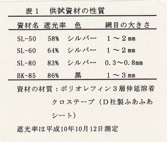 - 環境保全や資材の後始末の面から自然分解性の資材について検索検討が必要である。また、農村景観という観点から黒、シルバー等の色は抵抗感があり、適当な色や質感について検討中である。