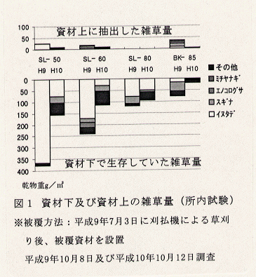 発表論文等 : 遮光資材の畦畔雑草に対する抑草効果、日本雑草学会誌、第43巻別号、286、1998.