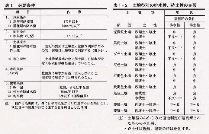 - 本基準は水稲不耕起乾田直播栽培の適地を全県的にみたものであり、適用に際しては本基準を参考の上、地区の実情に応じた判定基準を作成することが望ましい。