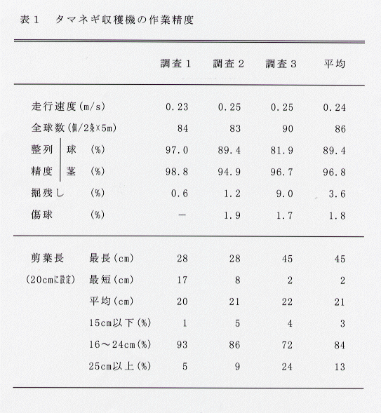 - タマネギの収穫作業はほとんど人力に頼っているのが現状であり、しかも収穫時期が梅雨期と重なり後作との絡みで一時期に労働が集中する。そのため腰痛や手足のしびれを訴える農家が多く、手軽な収穫機の開発が強く望まれている。そこで、本県では研究・普及・行政が一体となり平成8年度地域緊プロ事業により生研機構の技術指導を得ながらY社と共同でタマネギ収穫機の開発に取り組み、本収穫機を完成させた。