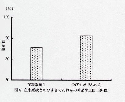 - 平成10年度より大阪府園芸優良健全種苗供給事業を通じて、年600苗を供給し、平成13年産の出荷は全て「のびすぎでんねん」に更新する。