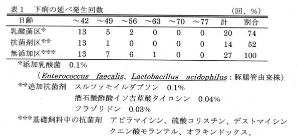 - そこで非抗菌性物質である乳酸菌製剤を利用することにより、下痢の発生を抑制して発育を向上させる飼養管理法について検討する。