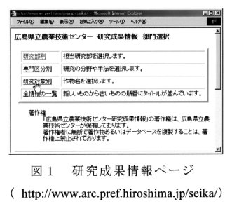 WWWによる広島県農業研究成果情報提供システム