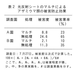 - 光反射シートに薬剤防除を併用すると防除効果が高まる。