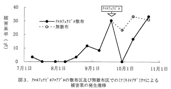 - ヒメハナカメムシ類やミナミキイロアザミウマなどの害虫の発生には、年次や地域間で違いがある。それぞれの地域での害虫や天敵の発生に応じて選択的殺虫剤の種類や散布時期を選ぶ。