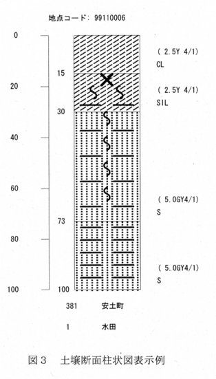 - 土壌断面調査のデータを入力することで柱状図が作成できる(図3)。