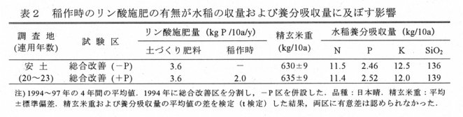- 稲作時のリン酸施肥の省略については、今後とも継続して調査する必要がある。