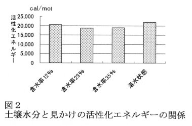 - 見かけの活性化エネルギー(Ea)は、土壌水分に関係なくほぼ一定である(図2)。